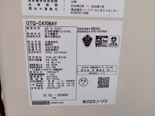 施工事例:筑西市赤浜 ノーリツ石油給湯機付ふろがまOTQ-C4706AY 給湯器交換工事
