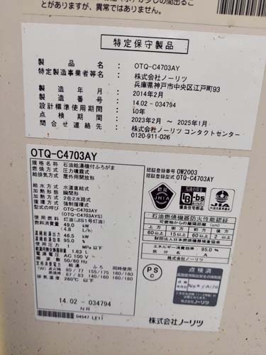 ノーリツ 石油給湯器